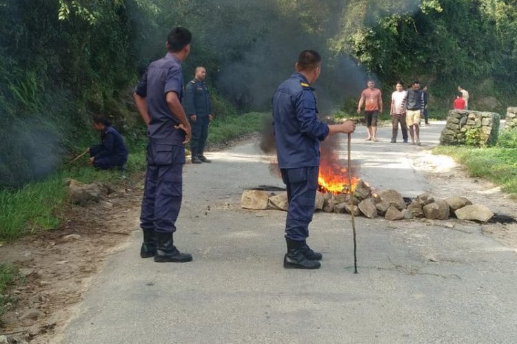 शिखरकोटमा सडकमा ढुंगा राखेर टायर बालिएको छ। आफूहरुलाई अपराधी सरह जेल हाल्ने कानुन आएकाले आन्दोलनमा उत्रनु परेको चालक अनिल गुरुङले बताए।