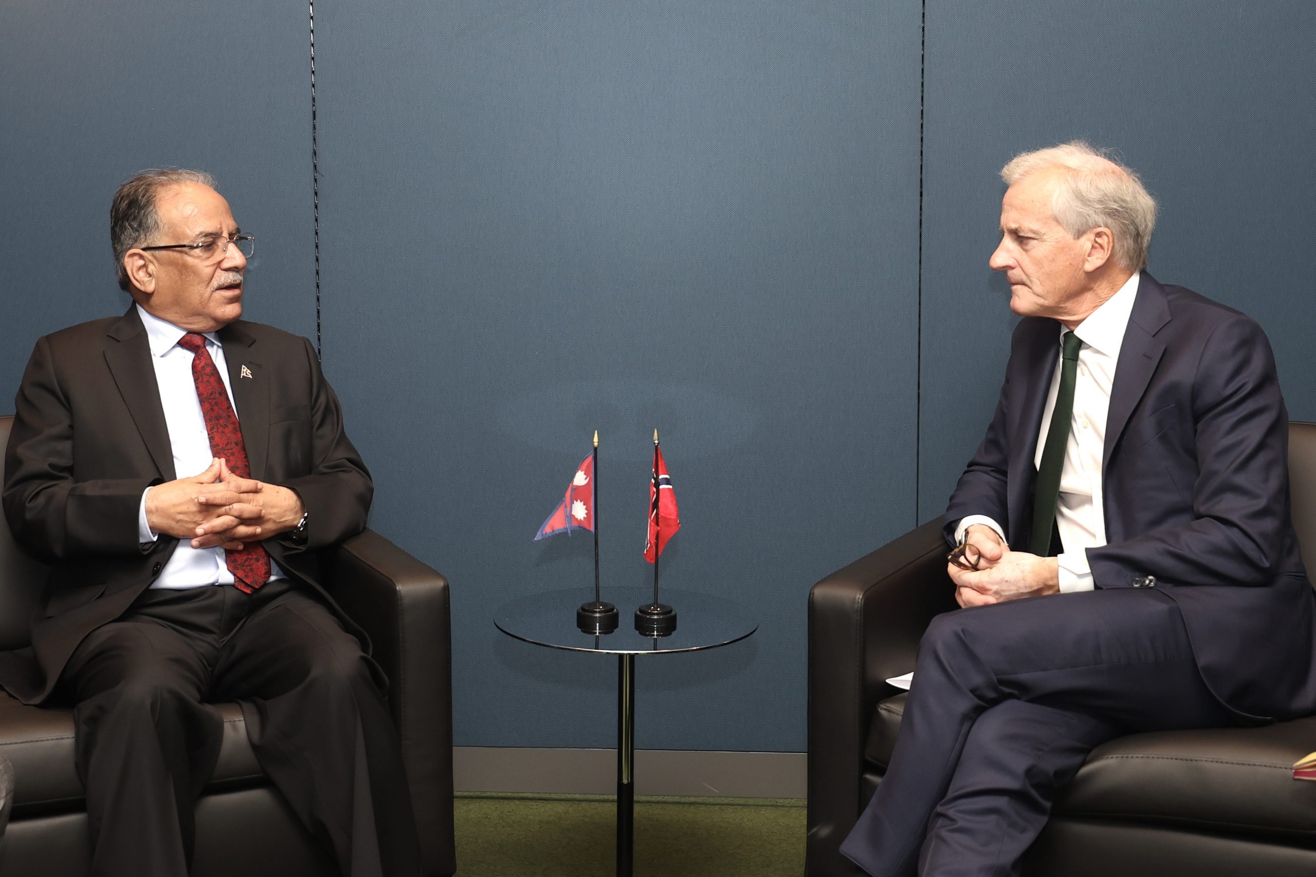 न्यूयोर्क : संयुक्त राष्ट्रसङ्घको ७८औँ महासभामा नेपालको नेतृत्व गर्दै न्यूयोर्क आउनुभएका प्रधानमन्त्री पुष्पकमल दाहाल ‘प्रचण्ड’ र नर्वेका प्रधानमन्त्री युनस गार स्टोरेबीच राष्ट्र सङ्घको मुख्यालयमा बुधबार भेटघाट भएको छ ।