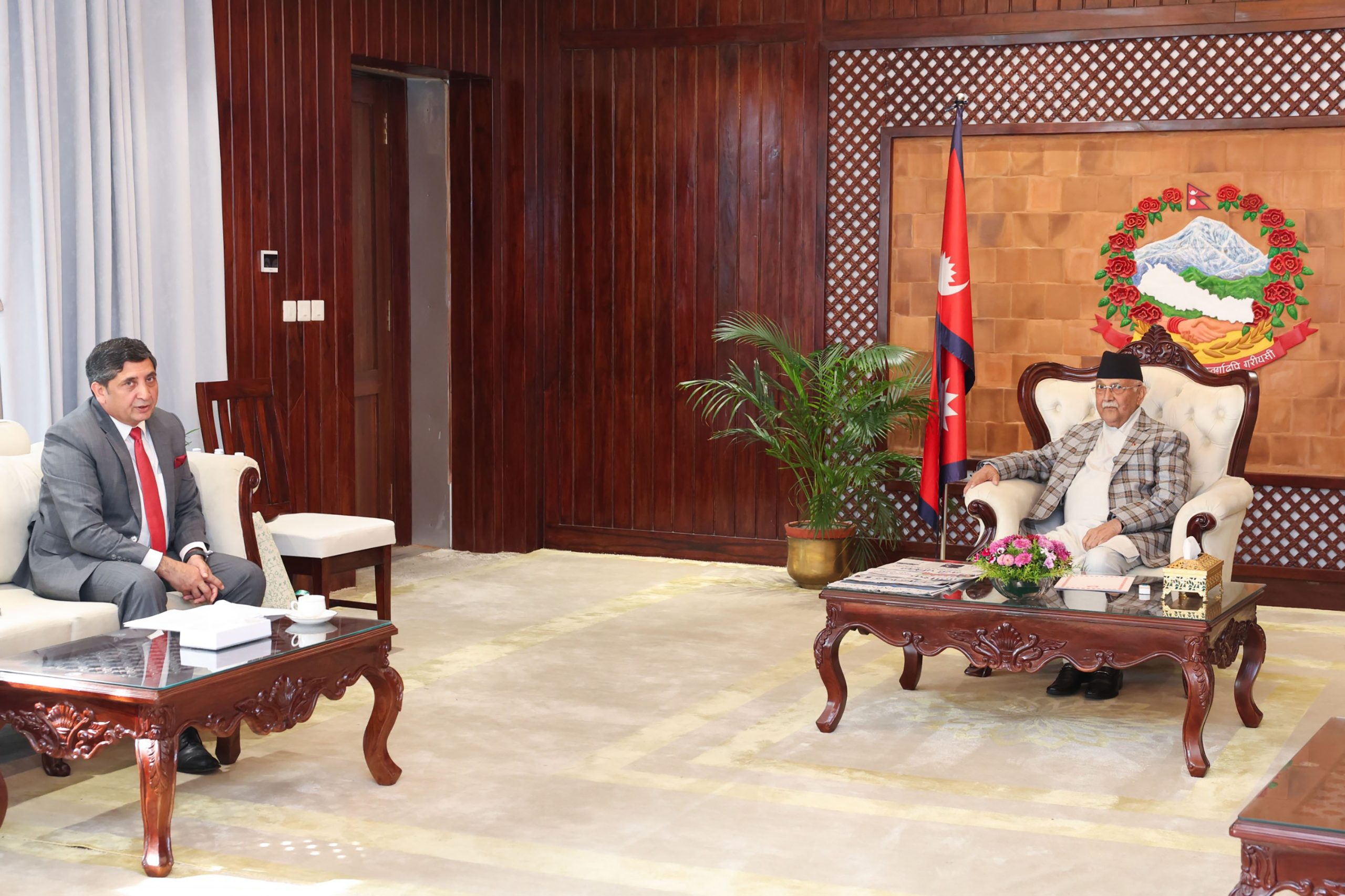काठमाडौँ : प्रधानमन्त्री केपी शर्मा ओलीसँग नेपालका लागि पाकिस्तानका राजदूत एब्रार एच हस्मीले आज शिष्टाचार भेट गर्नुभएको छ ।
