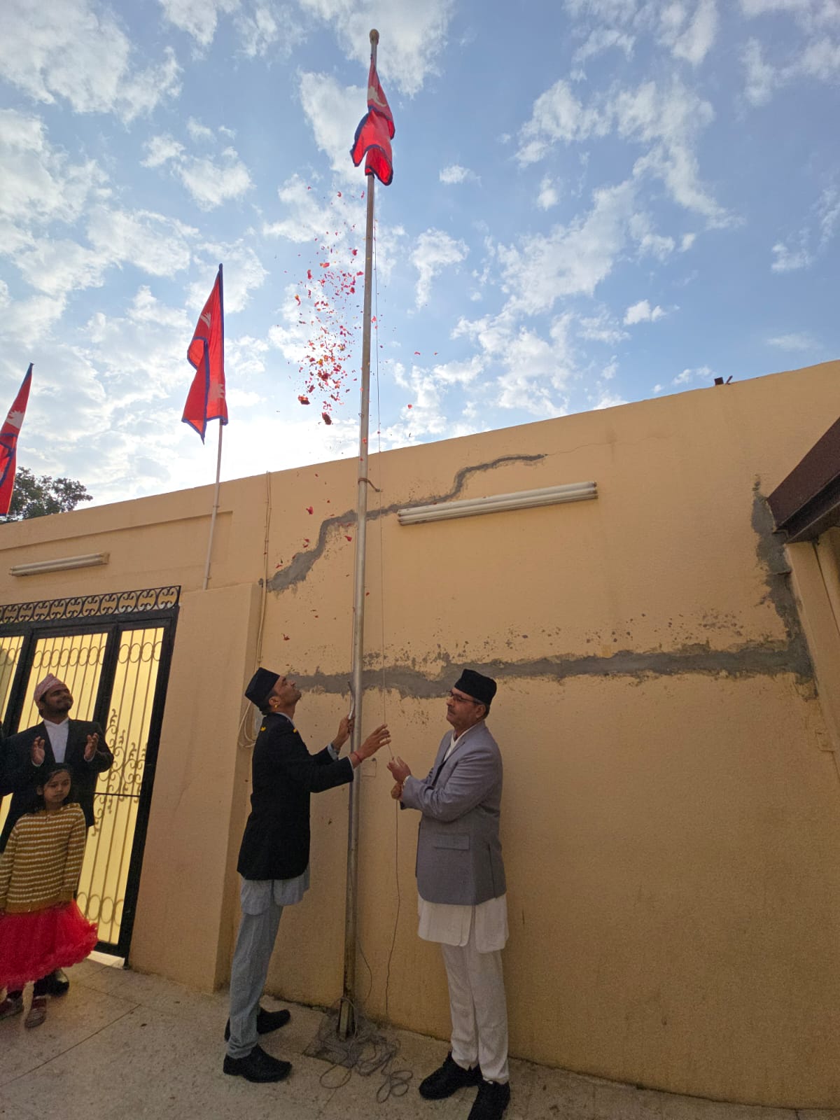 नेपालको राष्ट्रिय झन्डा फहराएर प्रारम्भ भएको उक्त कार्यक्रममा साउदी अरबका लागि नेपालका राजदूत नरेशविक्रम ढकालले प्रजातन्त्र प्राप्तिका लागि शुक्रराज शास्त्री, दशरथ चन्द, धर्मभक्त माथेमा र गङ्गालाल श्रेष्ठलगायत सहिदहरुले गर्नुभएको योगदानको स्मरण गर्नुभयो ।