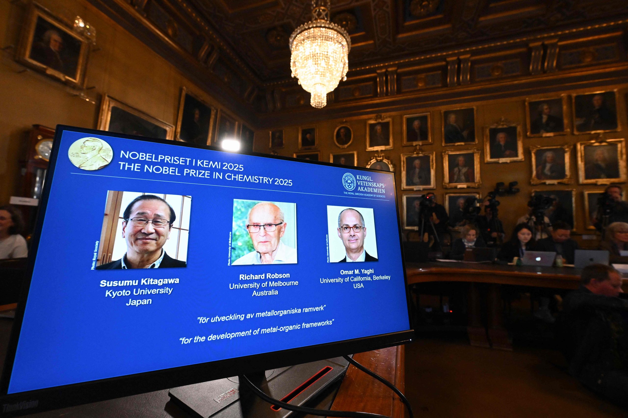 पुरस्कार समितिका अनुसार ’मेटल–अग्र्यानिक फ्रेमवर्क’ (एमओएफ) को विकास गरेका जापानका सुसुमु कितागावा, अस्ट्रेलियाका रिचर्ड रब्सन र अमेरिकाका ओमर यागीलाई सन् २०२५ को नोबेल पुरस्कार दिन लागिएको हो।
