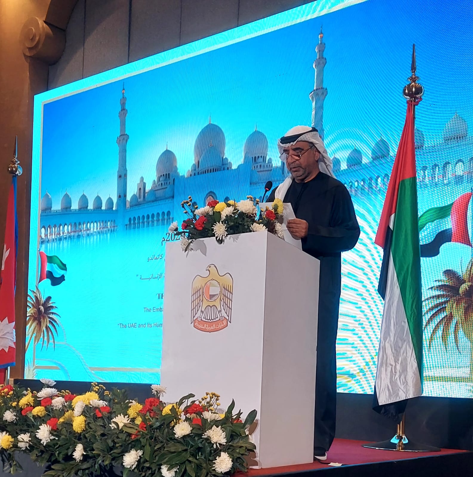 काठमाडौँ : नेपालका लागि संयुक्त अरब इमिरेट्स (युएई) का राजदूत अब्दुल्ला सइद मुवारक जरवान अल शाम्सीले प्राकृतिक विपत्तिलगायत सङ्कटका बेला आफ्नो देशले विश्वसमुदायलाई सहयोग गर्दै आएको र त्यसनिम्ति सधैँ तत्पर रहेको बताउनुभएको छ ।